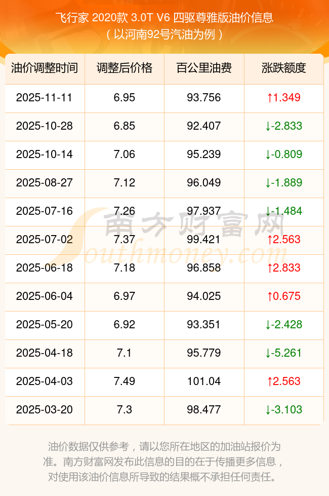 根據(jù)11月11日92號汽油最新調(diào)整價格6.95元/升來計算(以河南為例),該車型每百公里的平均油費是93.756元,上一輪10月28日調(diào)整價格6.85元每升來計算,每百公里的平均油費是92.407元,對比上一輪多花1.349元,下一輪的油價調(diào)整時間是11月24日24時。