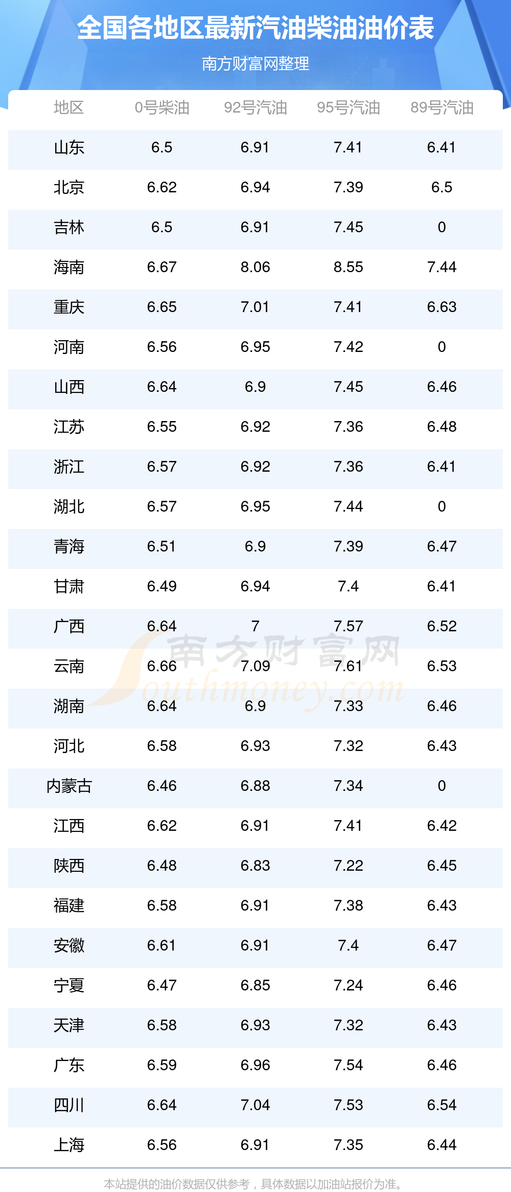 油價數(shù)據僅供參考,請以您所在地區(qū)的各加油站報價為準。