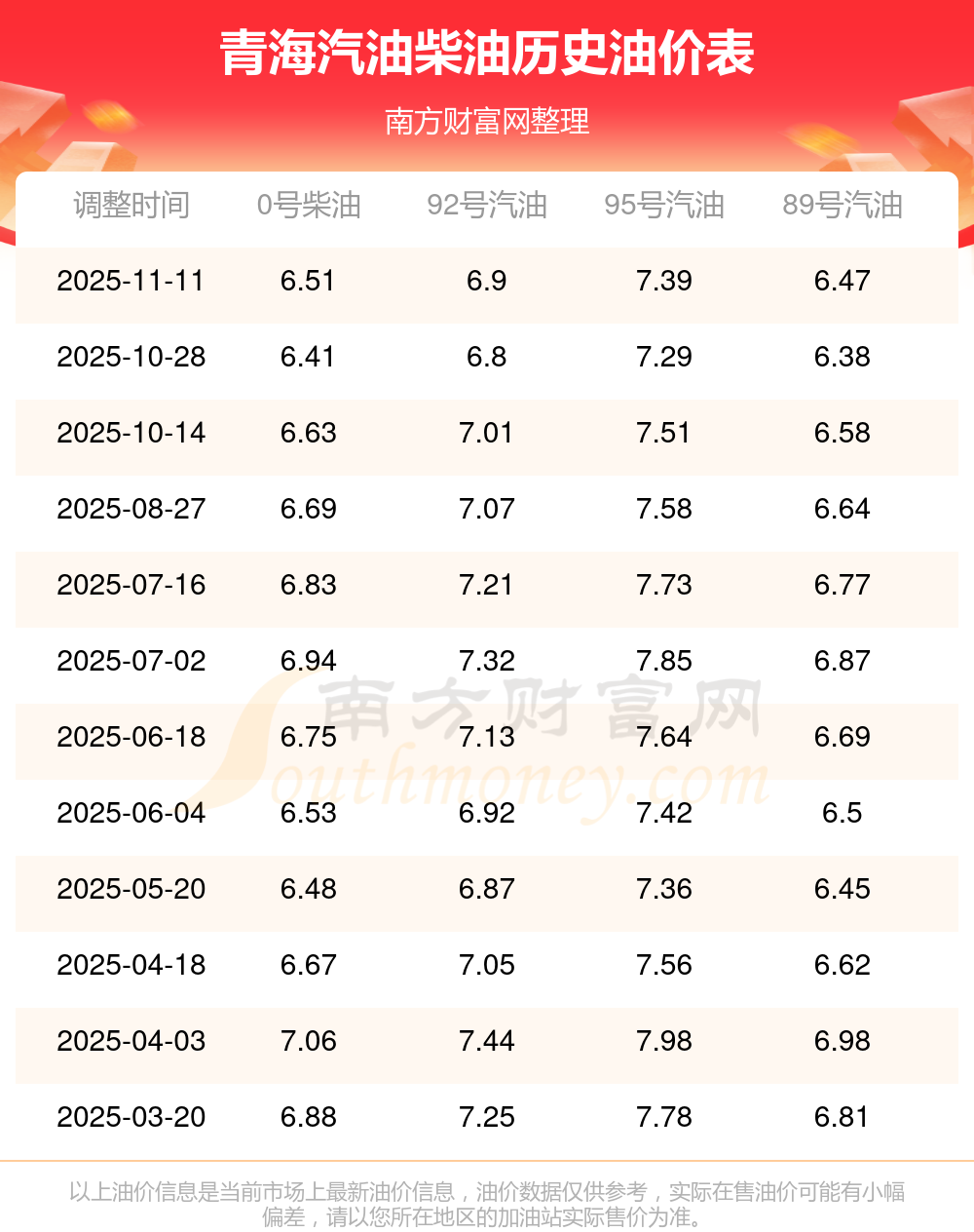 按照11月11日92號汽油最新調(diào)整價格6.9元/升來計算(以青海為例),該車型百公里平均油費為69.621元,按照上一輪10月28日調(diào)整價格6.8元/升來計算,百公里平均油費為68.612元,對比上一輪多花1.009元,下一輪油價調(diào)整時間為11月24日24時。
