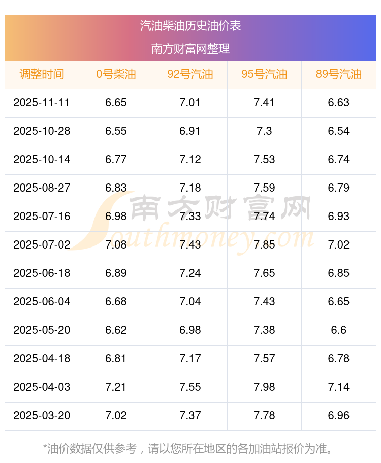11月油價調整時間:11月10日、11月24日