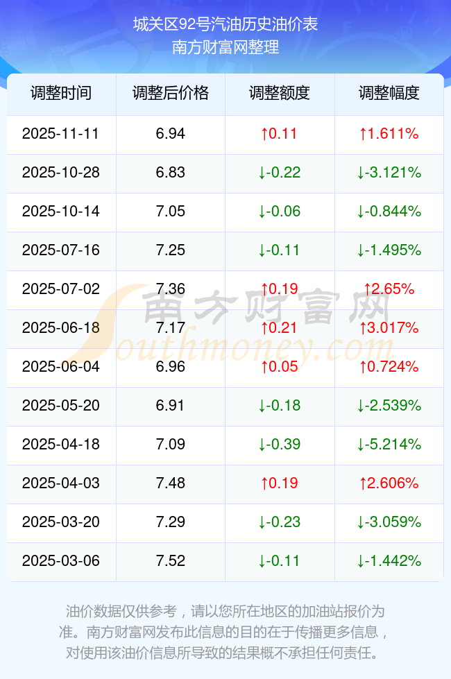 11月13日城關區(qū)92號汽油歷史油價一覽表