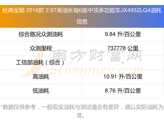 根據車主實測數據,該車型低油耗為8.76L/100km,高油耗為10.91L/100km,綜合路況眾測油耗為9.84L/100km,工信部綜合油耗為-L/100km。