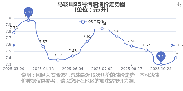 馬鞍山2025年油價調整走勢圖