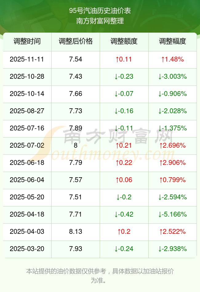 廣東2025年汽油價(jià)格調(diào)整時(shí)間表