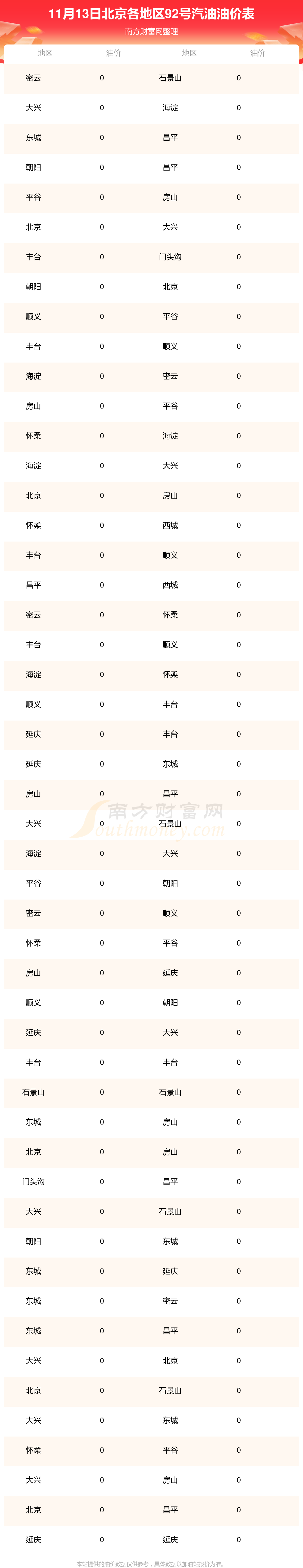 11月13日北京92號汽油最新價格是6.94元每升,調整時間為11月11日,相對上次調整增了0.1元,增1.462%。