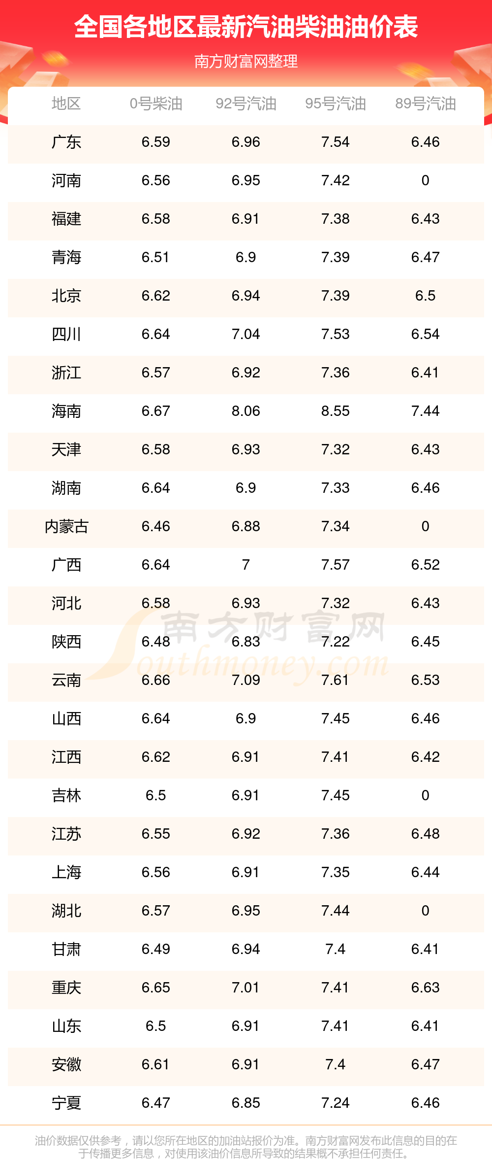 全國89號汽油11月13日最新平均價格為7元/升,調(diào)整時間為11月11日。其中,全國89號汽油最低為浙江,價格為6.41元/升;89號汽油最高為海南,價格為7.44元/升。下一輪油價調(diào)整時間11月24日24時,距離現(xiàn)在還有11.26天。