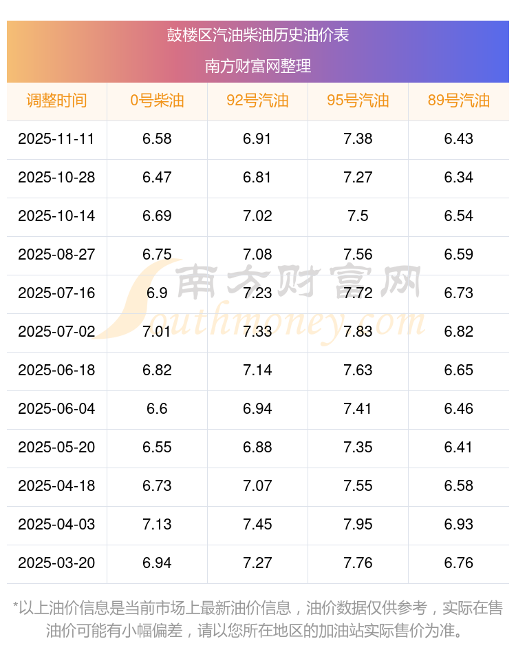 2025年鼓樓區(qū)油價調(diào)整時間表