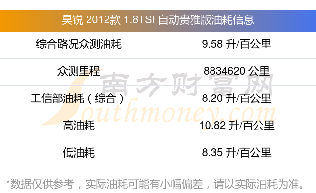 根據多位車主實測得出數據,該車型低油耗為8.35升每百公里,高油耗為10.82升每百公里,綜合路況眾測油耗為9.58升每百公里,工信部綜合油耗為8.20升每百公里。