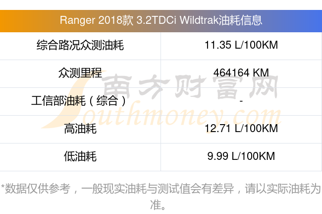 根據車主實測數據,該車型低油耗為9.99升/百公里,高油耗為12.71升/百公里,綜合路況眾測油耗為11.35升/百公里。