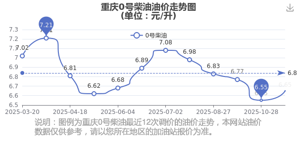 油價調(diào)整最新消息:重慶汽油、柴油11月13日每升最新價格:92號汽油為7.01元;95號汽油為7.41元;89號汽油為6.63元;0號柴油為6.65元,本輪油價調(diào)整時間為11月11日。重慶下一輪油價調(diào)整時間11月24日24時,距離現(xiàn)在還有11.24天。