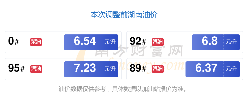 11月13日湖南95號汽油價格為7.33元每升,本次調(diào)整時間為11月11日,相對上次上調(diào)了0.11元,上調(diào)1.462%。