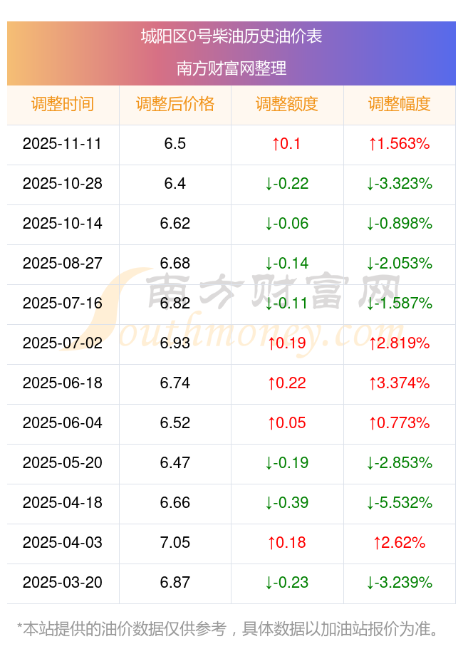 城陽區(qū)0號(hào)柴油歷史油價(jià)表