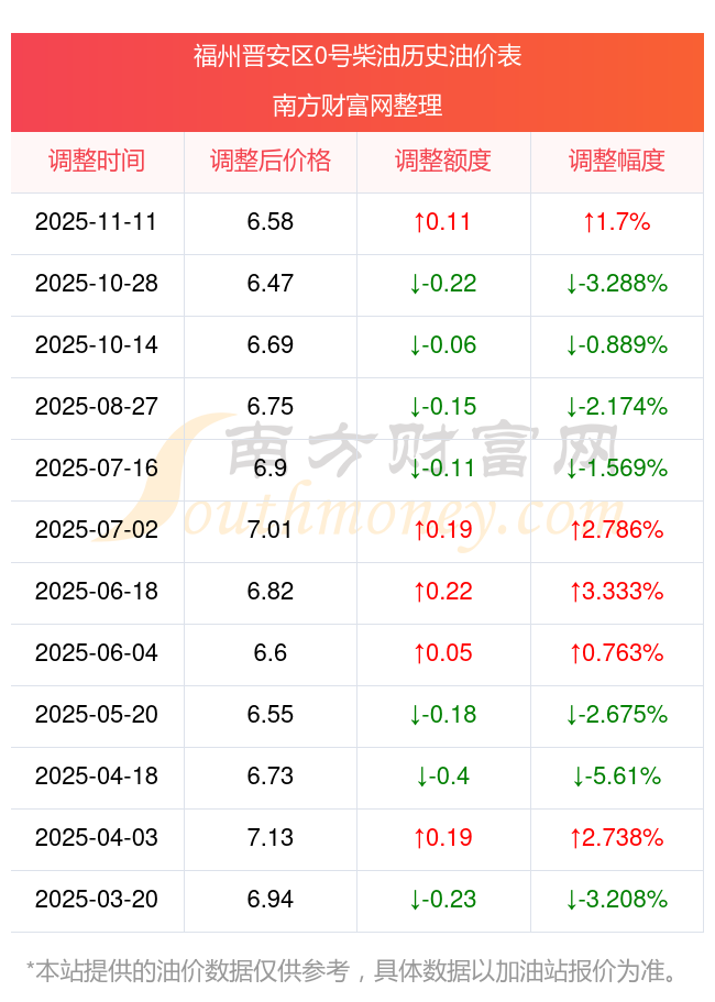 福州晉安區(qū)0號(hào)柴油歷史油價(jià)一覽表