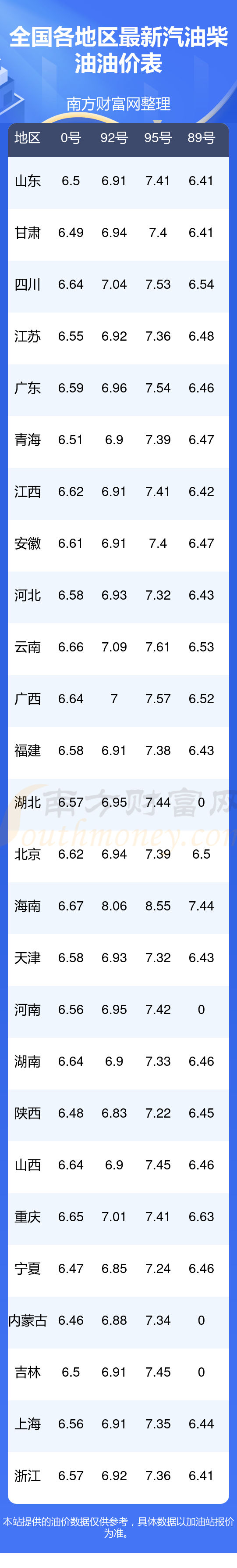 以上油價(jià)信息是當(dāng)前市場(chǎng)上最新油價(jià)信息,油價(jià)數(shù)據(jù)僅供參考,實(shí)際在售油價(jià)可能有小幅偏差,請(qǐng)以您所在地區(qū)的加油站實(shí)際售價(jià)為準(zhǔn)。