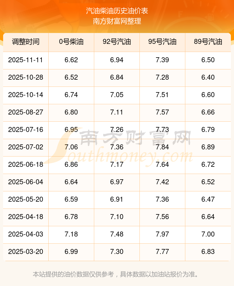 11月13日北京平谷95號(hào)汽油的價(jià)格為11月11日油價(jià)調(diào)整后的價(jià)格,每升7.39元,對(duì)比上一輪油價(jià)調(diào)整時(shí)間10月28日的價(jià)格7.28元每升,上調(diào)了0.11元,上調(diào)幅達(dá)1.511%。下一輪油價(jià)調(diào)整時(shí)間11月24日24時(shí),距離現(xiàn)在還有11.19天。