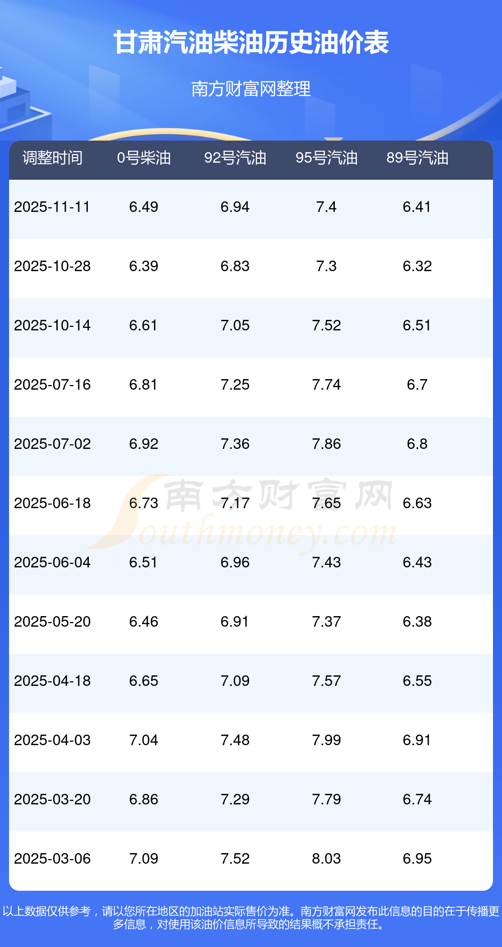 (11月13日)92、95號(hào)汽油價(jià)格一覽表