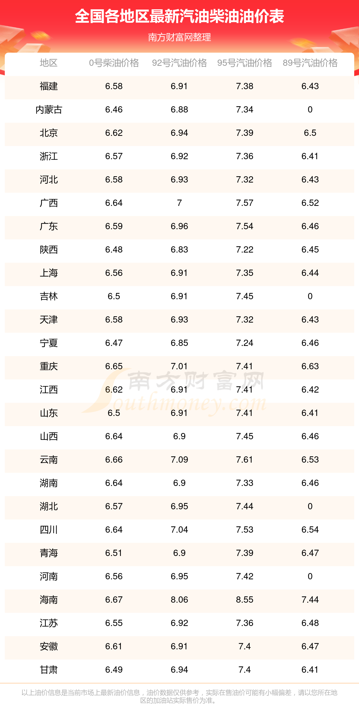 以上數(shù)據(jù)僅供參考,請以您所在地區(qū)的加油站實(shí)際售價(jià)為準(zhǔn)。南方財(cái)富網(wǎng)發(fā)布此信息的目的在于傳播更多信息,對使用該油價(jià)信息所導(dǎo)致的結(jié)果概不承擔(dān)責(zé)任。
