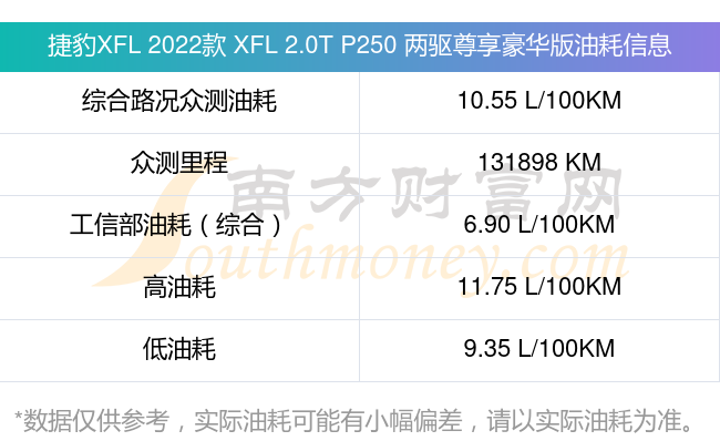 根據(jù)多位車主實(shí)測(cè)得出數(shù)據(jù),該車型低油耗為9.35升每百公里,高油耗為11.75升每百公里,綜合路況眾測(cè)油耗為10.55升每百公里,工信部綜合油耗為6.90升每百公里。