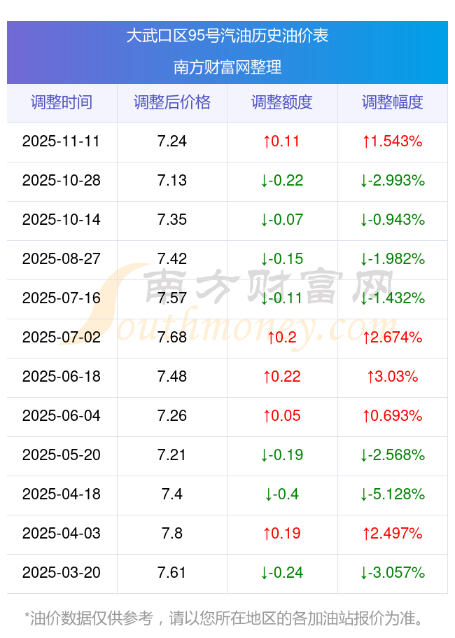 本站提供的油價(jià)數(shù)據(jù)僅供參考,具體數(shù)據(jù)以加油站報(bào)價(jià)為準(zhǔn)。