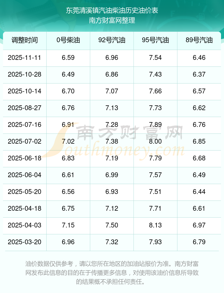 東莞清溪鎮(zhèn)歷史油價(jià)表