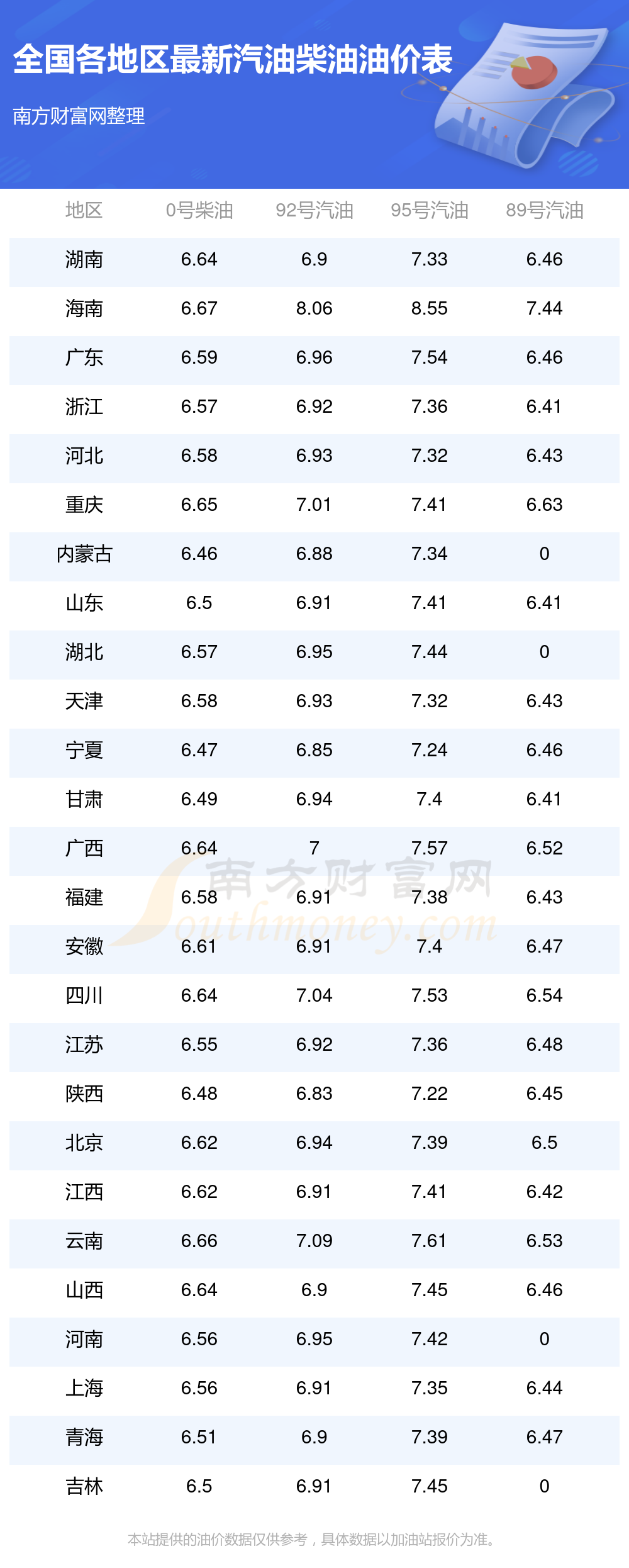 11月13日全國各地汽油油價今日價格查詢