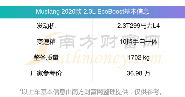 Mustang 2020款 2.3L EcoBoost搭載了一臺2.3T299馬力L4渦輪增壓發(fā)動機,采用10擋手自一體自動檔變速箱,常規(guī)整備質(zhì)量1702kg,廠家參考價36.98萬元。