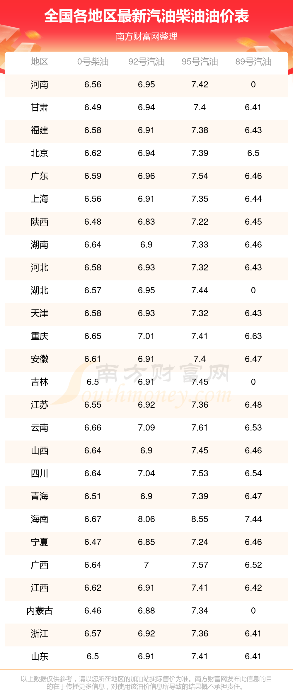 (11月13日)全國油價一覽表