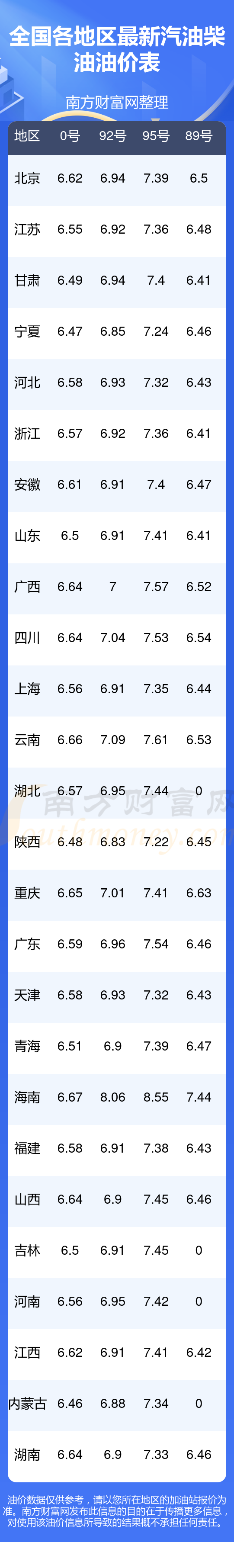 本站提供的油價數(shù)據(jù)僅供參考,具體數(shù)據(jù)以加油站報價為準。