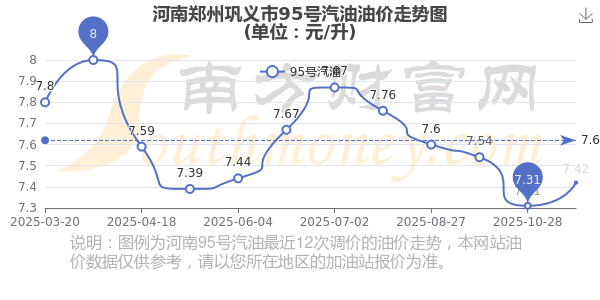 河南鄭州鞏義市95號(hào)汽油歷史油價(jià)走勢(shì)圖