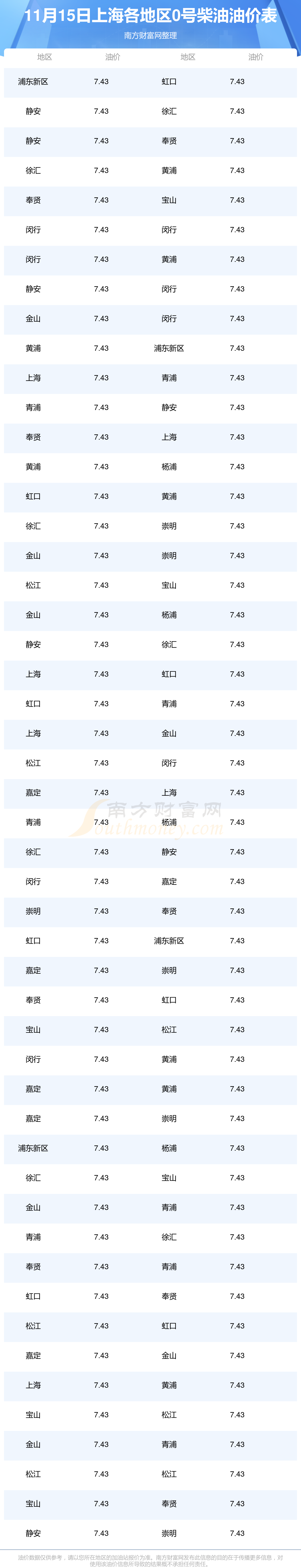 上海0號柴油11月15日的價格是6.56元每升,這是11月11日調(diào)整后的價格,相對比上次調(diào)整時間10月28日的油價6.45元每升,增了0.11元。