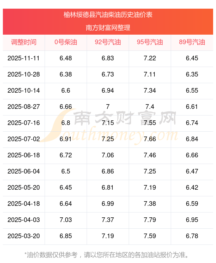 本站提供的油價(jià)數(shù)據(jù)僅供參考,具體數(shù)據(jù)以加油站報(bào)價(jià)為準(zhǔn)。