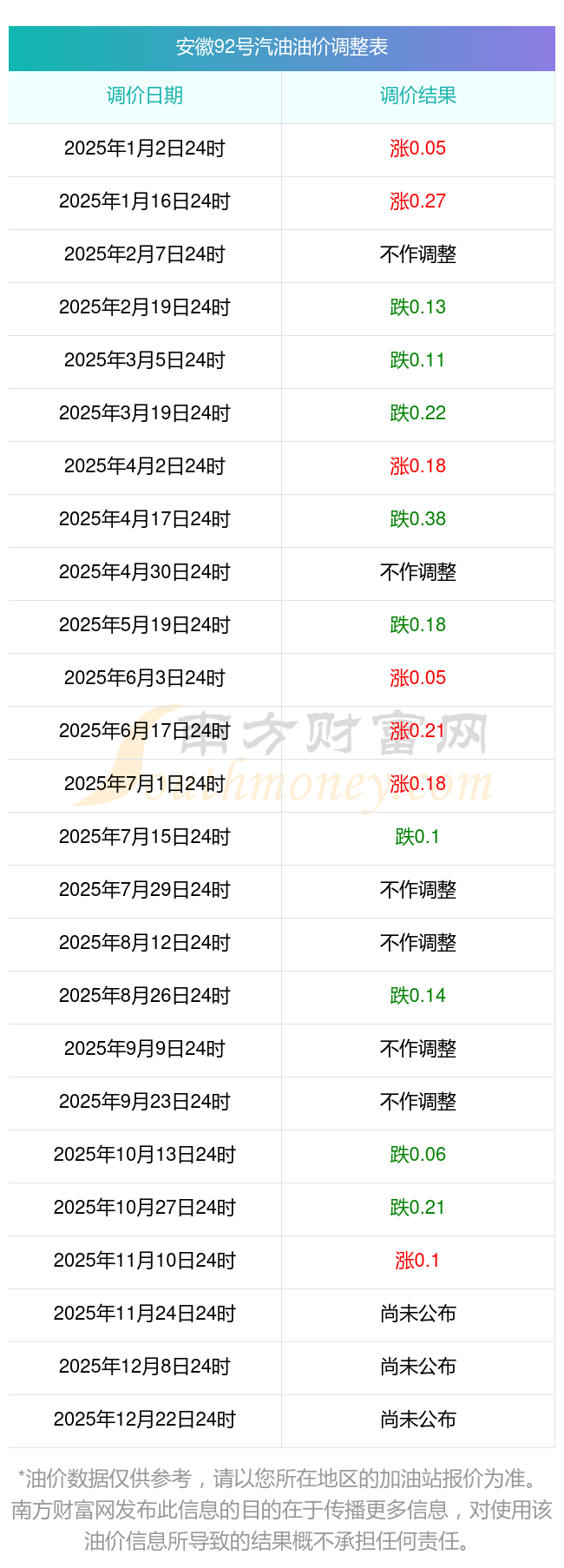 安徽巢湖2025年油價(jià)調(diào)整時(shí)間及最新價(jià)格表