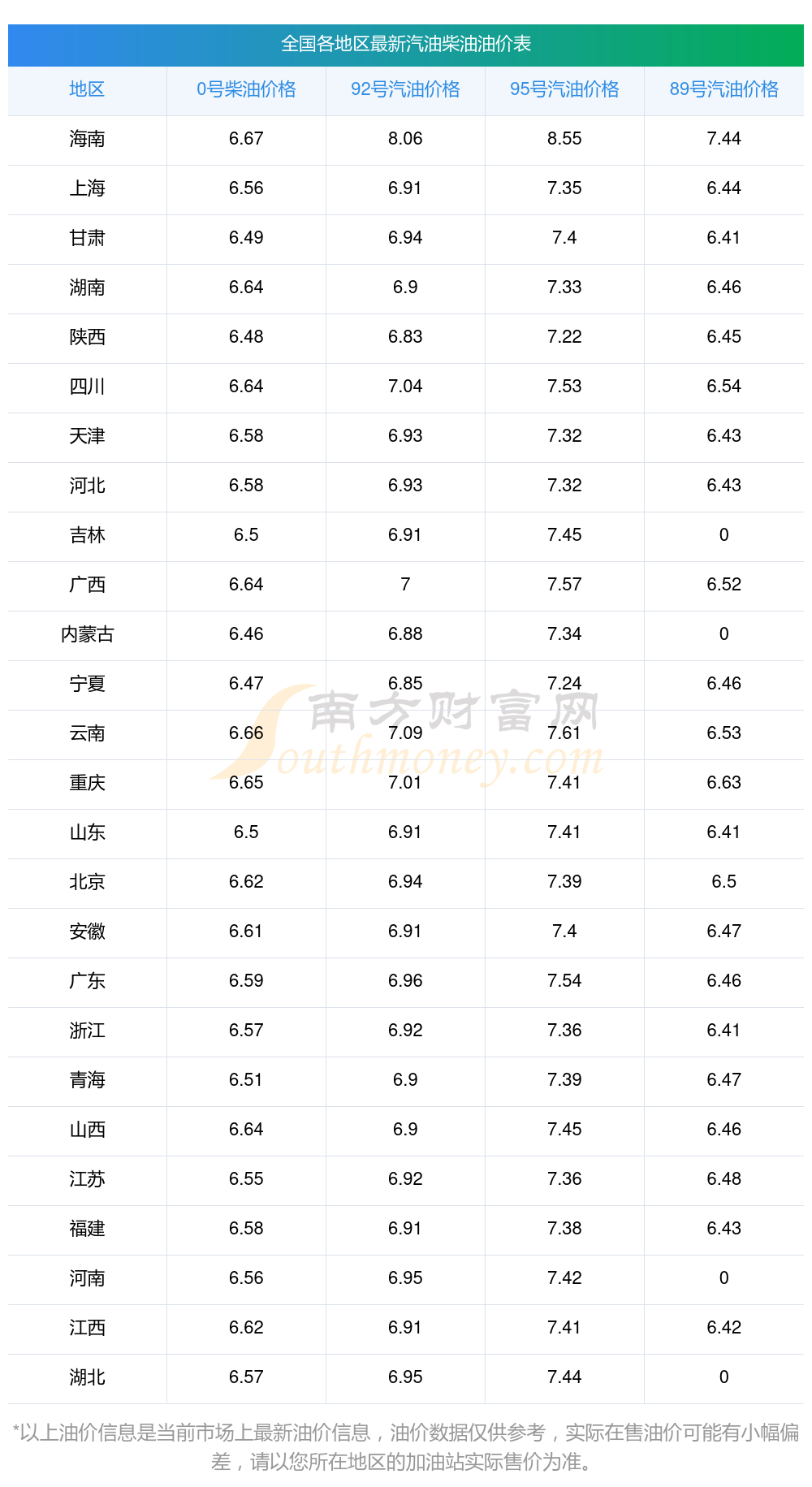 2025年11月15日全國各地油價調(diào)整及最新汽油價格表