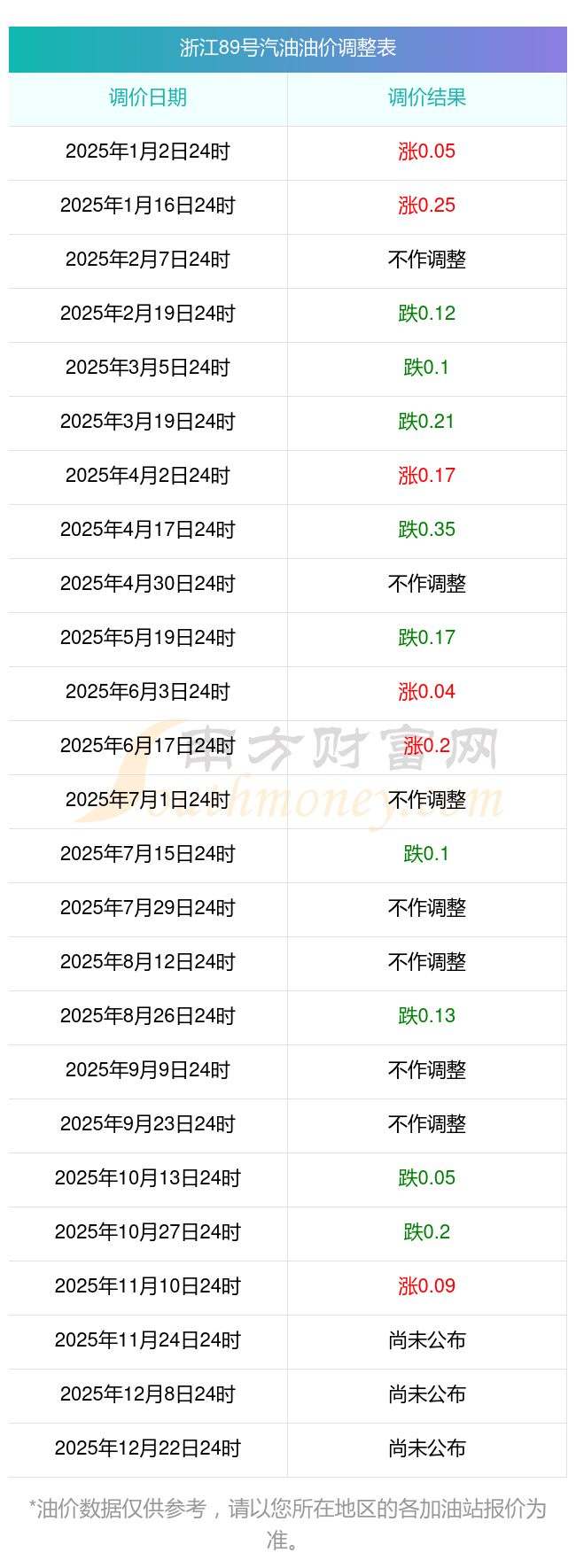 2025年油價(jià)調(diào)整時(shí)間及價(jià)格一覽表