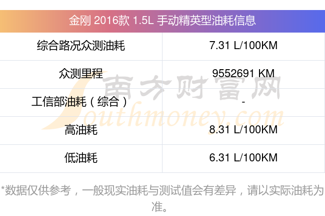 根據(jù)車主實測數(shù)據(jù),該車型低油耗為6.31升每百公里,高油耗為8.31升每百公里,綜合路況眾測油耗為7.31升每百公里。