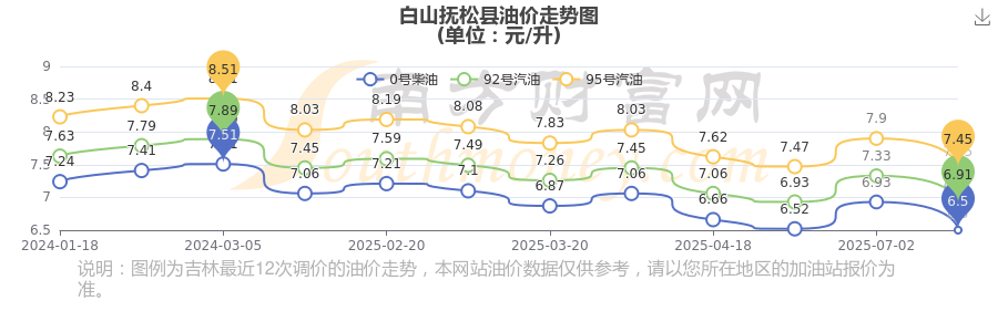 白山撫松縣汽油、柴油11月15日每升最新價格為:92號汽油為6.91元;95號汽油為7.45元;0號柴油為6.5元,調(diào)整時間為11月11日。