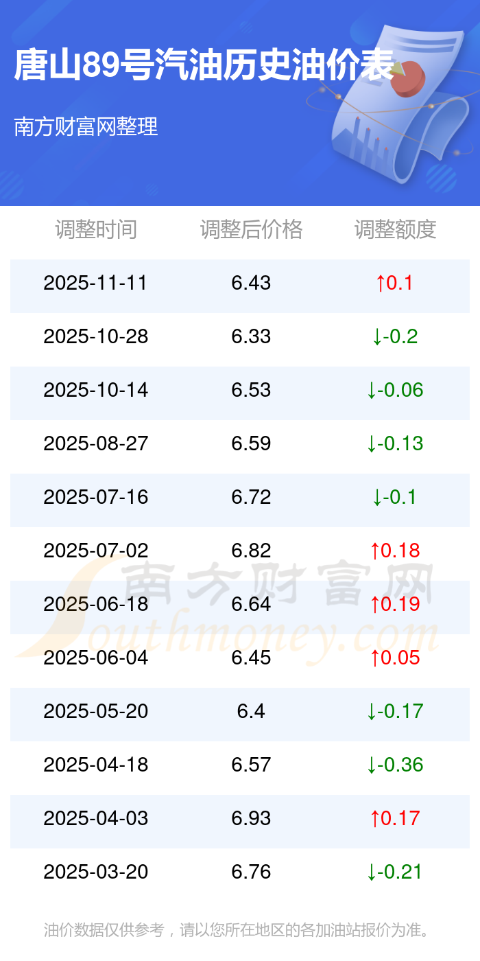 唐山89號汽油歷史油價表