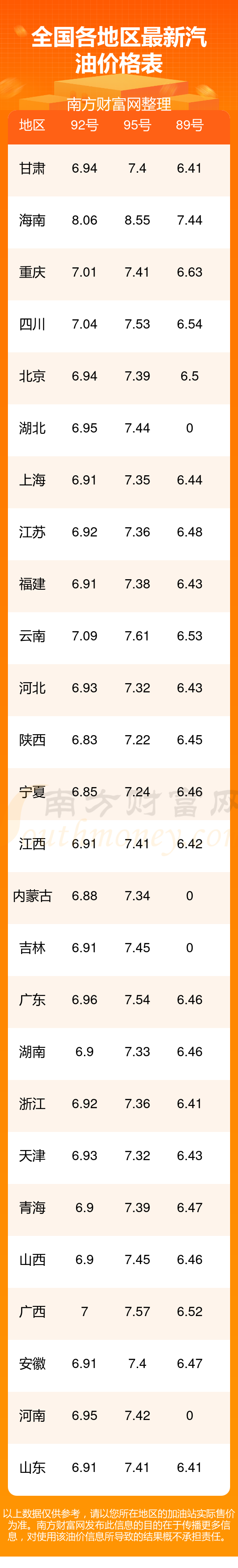 11月15日今日92號(hào)95號(hào)98號(hào)汽油價(jià)格
