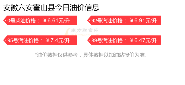 安徽六安霍山縣汽油、柴油11月15日每升最新價格為:92號汽油為6.91元;95號汽油為7.4元;89號汽油為6.47元;0號柴油為6.61元,調(diào)整時間為11月11日。
