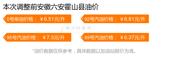 安徽六安霍山縣歷史油價走勢圖