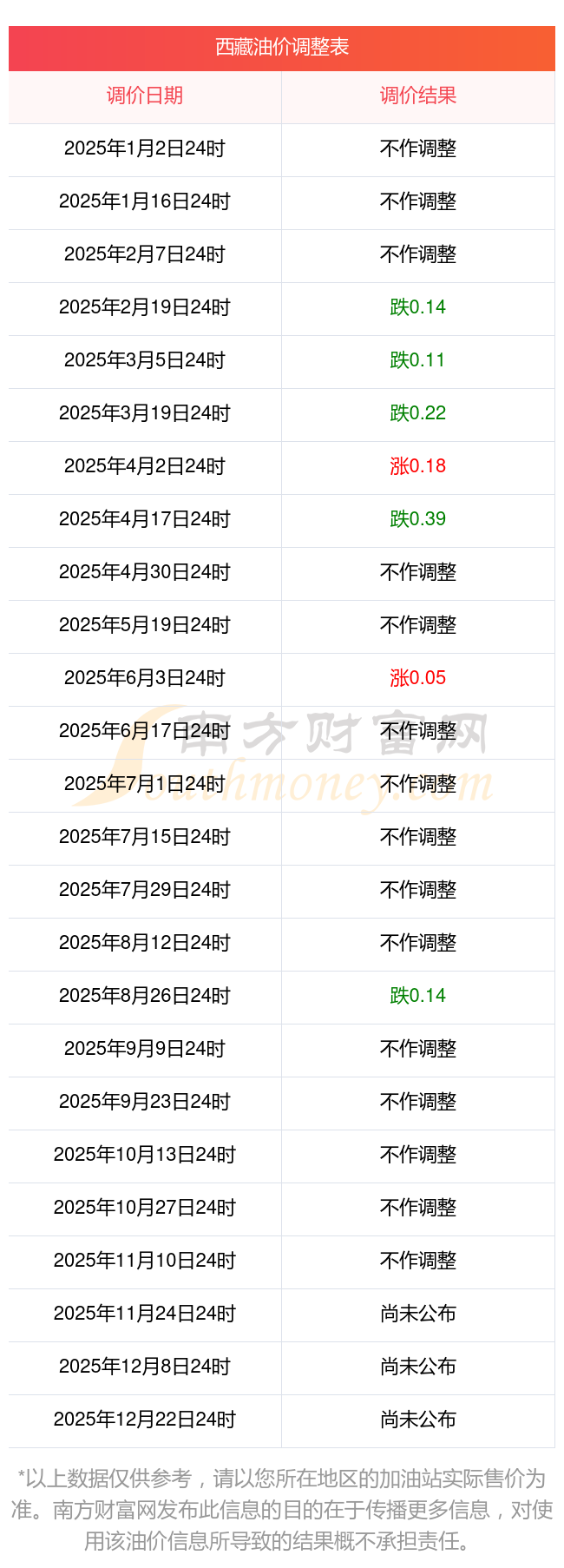 拉薩2025年油價(jià)調(diào)整時(shí)間及價(jià)格表