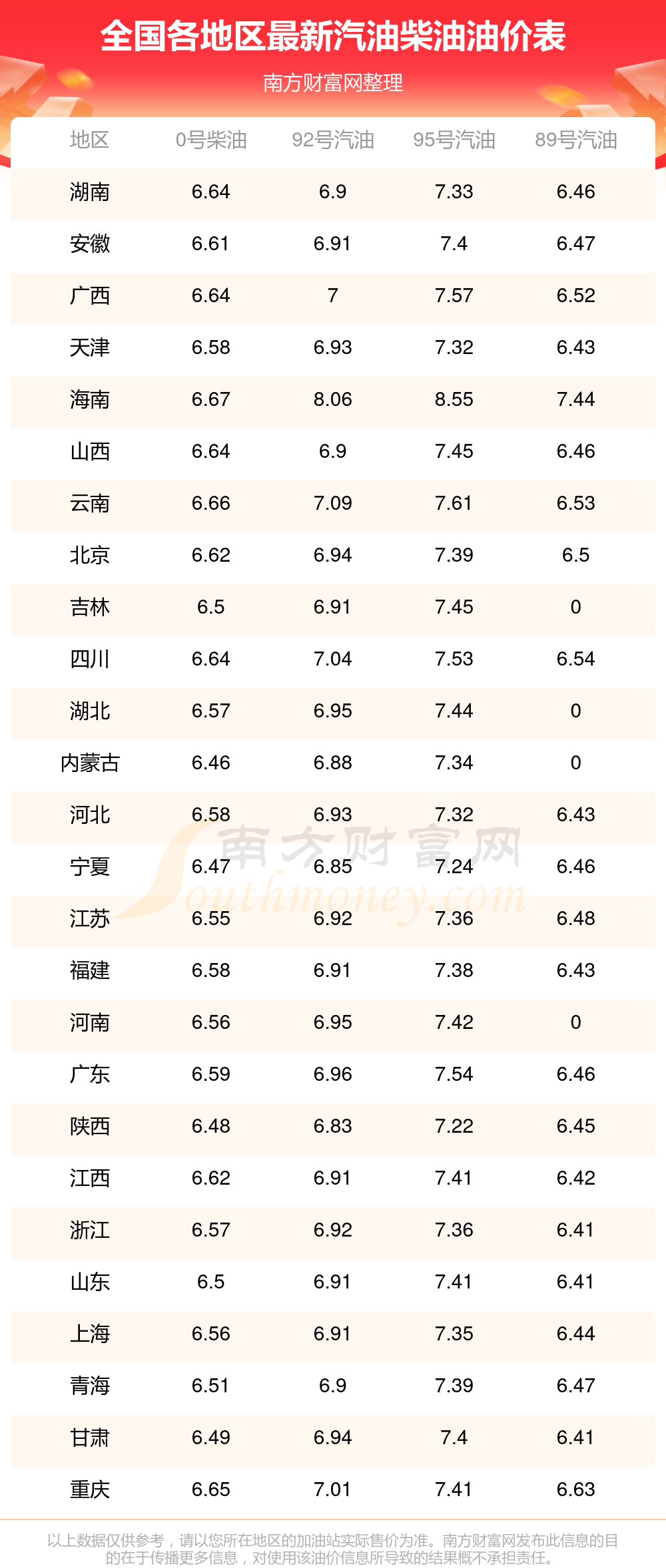 油價數(shù)據(jù)僅供參考,請以您所在地區(qū)的各加油站報價為準(zhǔn)。