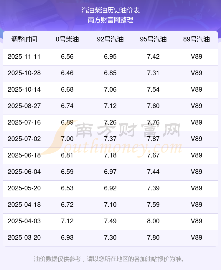 11月油價(jià)調(diào)整時(shí)間:11月10日、11月24日