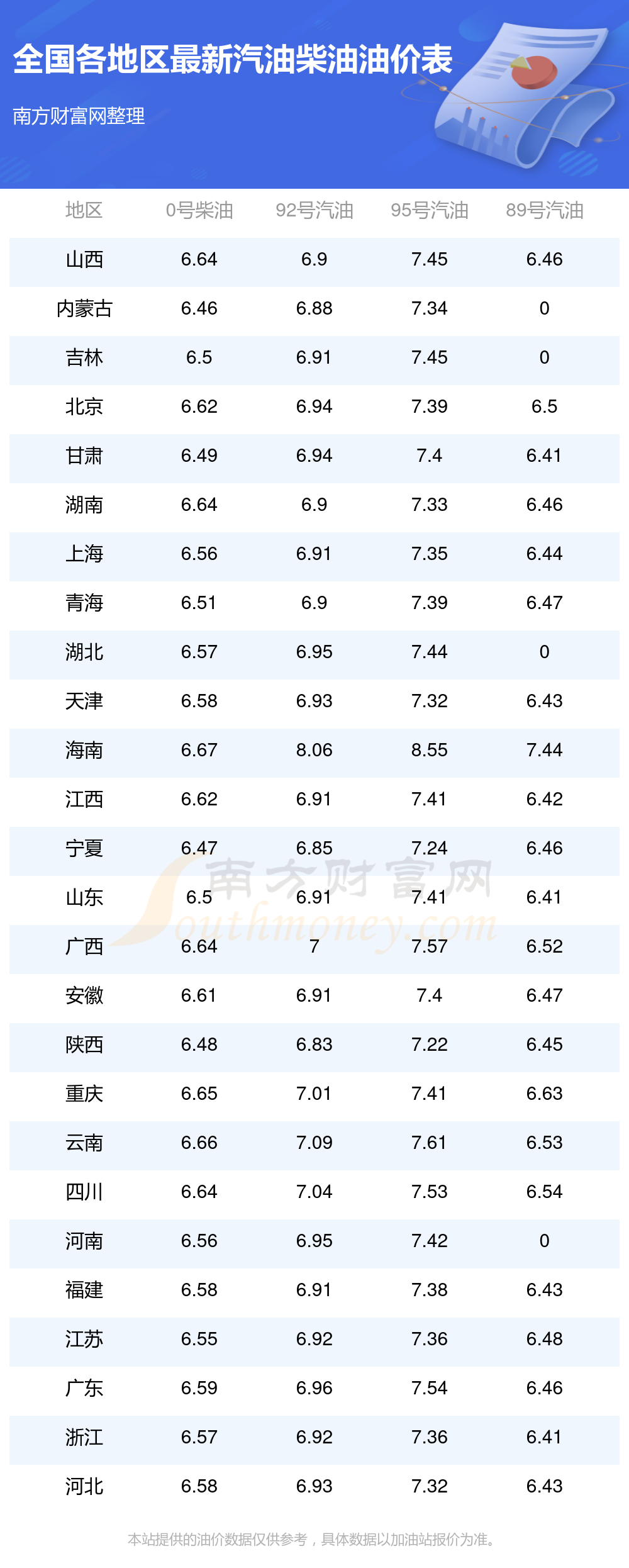 2025年11月15日全國油價調(diào)整及最新汽油價格表
