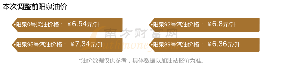 油價數(shù)據(jù)僅供參考,請以您所在地區(qū)的加油站報價為準。南方財富網(wǎng)發(fā)布此信息的目的在于傳播更多信息,對使用該油價信息所導(dǎo)致的結(jié)果概不承擔(dān)任何責(zé)任。
