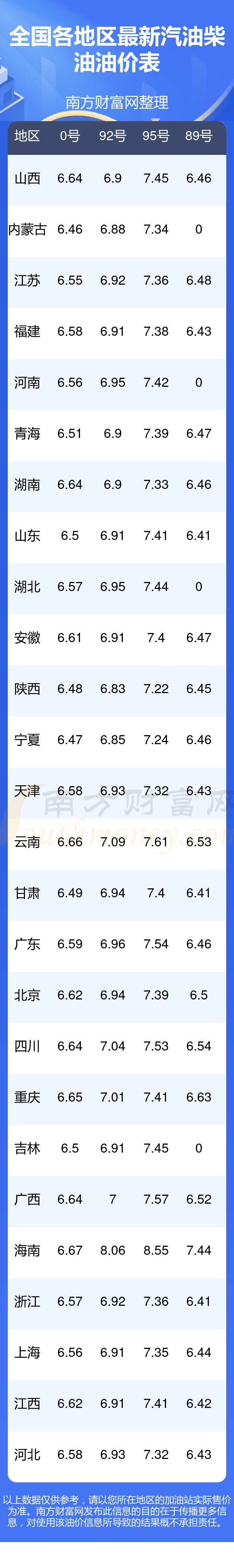 油價數(shù)據(jù)僅供參考,請以您所在地區(qū)的各加油站報價為準。