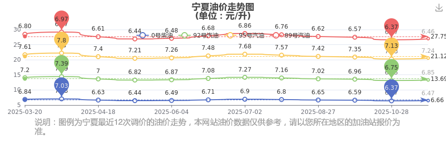 寧夏汽油柴油油價(jià)走勢(shì)圖