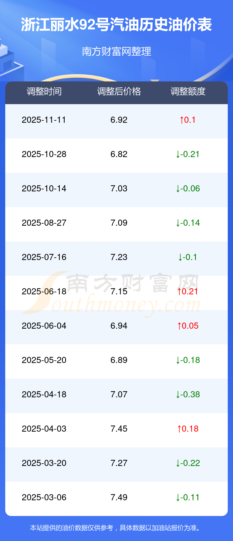 2025年92號(hào)汽油價(jià)格調(diào)整一覽表