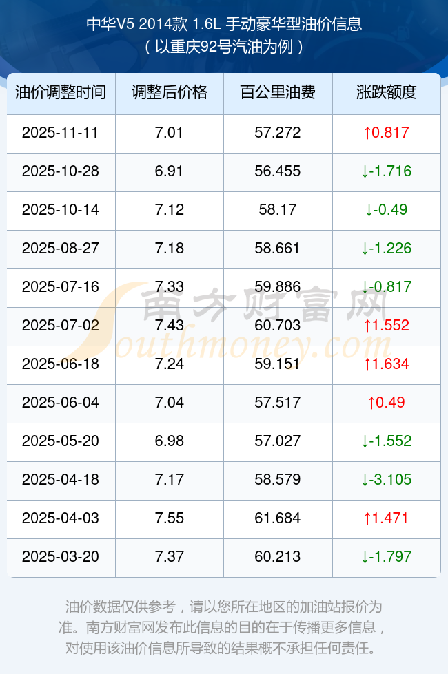 依照11月11日92號汽油最新調(diào)整價(jià)格7.01元/升來計(jì)算(以重慶為例),該車型百公里的平均油費(fèi)是57.272元,依照上一輪10月28日調(diào)整價(jià)格6.91元/升來計(jì)算,百公里的平均油費(fèi)是56.455元,對比上一輪多花0.817元,下一輪的油價(jià)調(diào)整時(shí)間11月24日24時(shí)。
