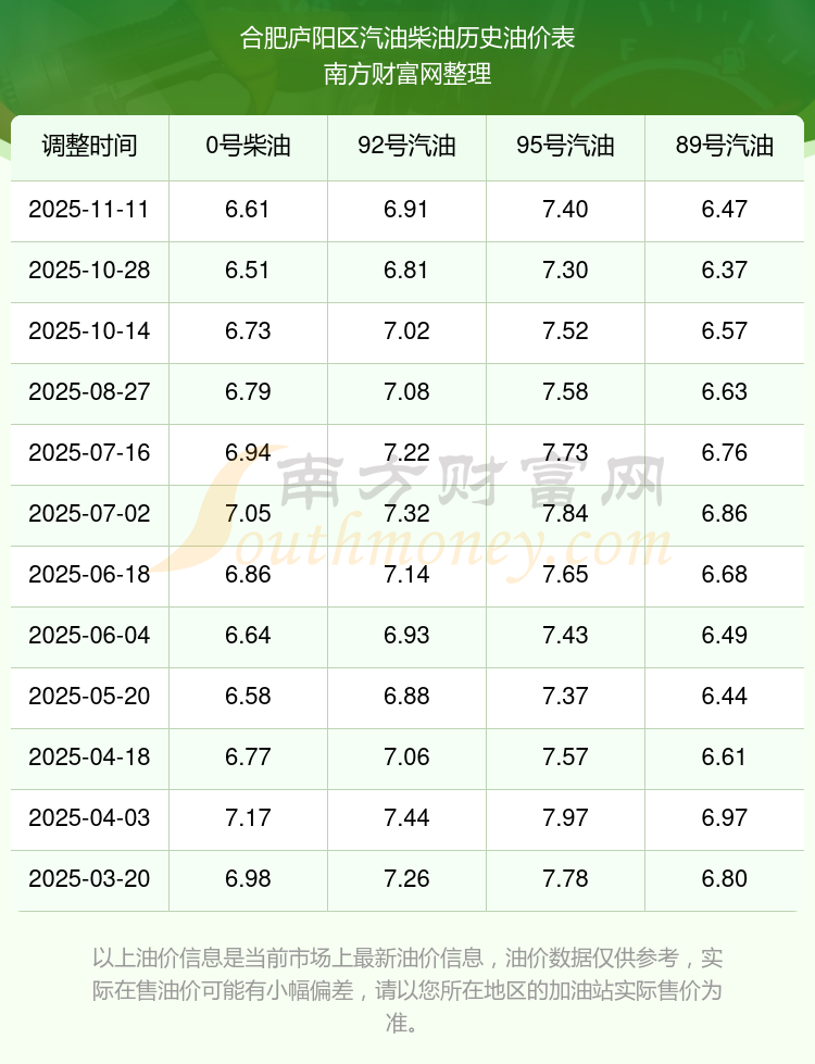 合肥廬陽(yáng)區(qū)歷史油價(jià)表